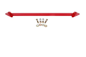 Increase steering stability and K-member rigidity on your S550 Mustang with a front Chassis Brace from BMR Suspension. The factory K-member legs can deflect under hard braking and extreme lateral loading. Built from heavy-duty 1- by 1.5-inch rectangular tubing and CNC-formed, laser-cut 3/16-inch steel plate, BMR's CB007 Chassis Brace is designed to support and stiffen the factory S550 K-member. This increases steering feel and stability during aggressive braking and maneuvering. BMR's CB007's front Chassis Brace ties the rear legs of the K-member together, reinforcing this major area of the K-member. This effectively reduces deflection when fore, aft, and lateral loads are applied to the chassis. BMR Suspension designed the CB007 front Chassis Brace for street performance, drag race, and handling application. This 100% bolt-on kit use existing boltholes and supplied hardware, allowing for easy installation with simple hand tools. Once installed, the Chassis Brace minimizes K-member deflection with no change in NVH. This brace reduces deflection, increasing steering feel and stability on both the street and track. This brace is designed to fit with both stock and aftermarket headers and exhaust systems. BMR Suspension's CB007 front Chassis Brace is available in black hammertone and red powdercoat for long-lasting good looks. Installation time is less than 1 hour. Proudly made in the U.S.A.!