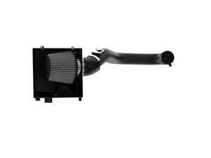 This intake system features a 5” tall conical air filter with three layers of oil-free synthetic media and requires no oil during maintenance to provide maximum convenience. Its progressive layering provides great filtration efficiency and dust holding capacity. This media is best suited for street and light off-road use. Pro DRY S filters are easily recharged with aFe's POWER CLEANER. One Piece 2-3/4" Mandrel-Bent Wrinkle-Black Powder-Coated Aluminum Intake Tube directs unrestricted airflow from the massive filter to the throttle body for more horsepower and torque. aFe developed this sturdy 18 gauge steel wrinkle-black powder-coated heat shield to mount onto the factory airbox to provide a hassle-free installation utilizing factory mounting locations. Premium hardware and clamps are used to securely mount the high flow air filter and the intake tube.