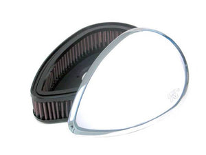 K&N air cleaner assemblies, designed for your Harley-Davidson, are a remarkable combination of performance and style. These air cleaner assemblies are made to increase horsepower and torque by supplying superior air flow. They are machined from billet aluminum, luster polished, then chrome plated to complement your show bike. This K&N custom air cleaner fits select Dyna, Softail, and Touring models. Each K&N air cleaner comes complete and ready to use including, a mounting bracket kit. There's nothing else to buy. Installation is easy, so exceptional performance is only a few steps away with a K&N custom air cleaner. Not only that, but these parts are designed for optimal looks. This unique custom teardrop-shaped cover will give your Harley the sleek, aggressive appearance you've been looking for.