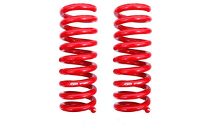 There is nothing like the aggressive look of a car with the right stance! Over time, stock springs sag, get rusty, and simply wear out. BMR Suspension believes the right springs go beyond looks?your 2008 and newer Challenger needs to perform, too! All BMR springs are manufactured from chrome silicon high-tensile spring wire, and are cold wound on a CNC coiling machine. The CNC coiling head can adjust the spring diameter in real time to ensure that every spring is exactly the same. This guarantees that your right spring matches your left spring. Every BMR spring is compressed solid at the factory, not once, but twice. This gives the spring its permanent set, and guarantees no sag. BMR springs are stress-relieved at 750 degrees F, ensuring most stresses induced during the winding process are eliminated. All springs are then shot-peened to eliminate residual surface stresses. Many spring manufacturers skip this step, but BMR insists on this operation as part of our spring manufacturing process. Every spring is computer tested as the last step?every spring, not just a sample from each batch. Each spring is loaded in the spring tester at the factory, then compressed and the CNC load cell measures the force for a variety of spring lengths. This allows BMR to offer a LIFETIME WARRANTY against spring sag.