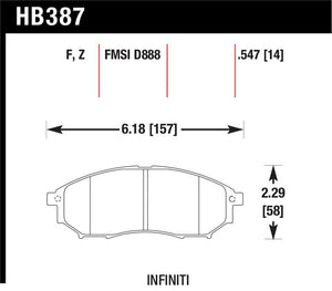 Hawk 06-09 350z/ 05-08 G35 w/o Brembo Performance Ceramic Street Front Brake Pads - HB387Z.547