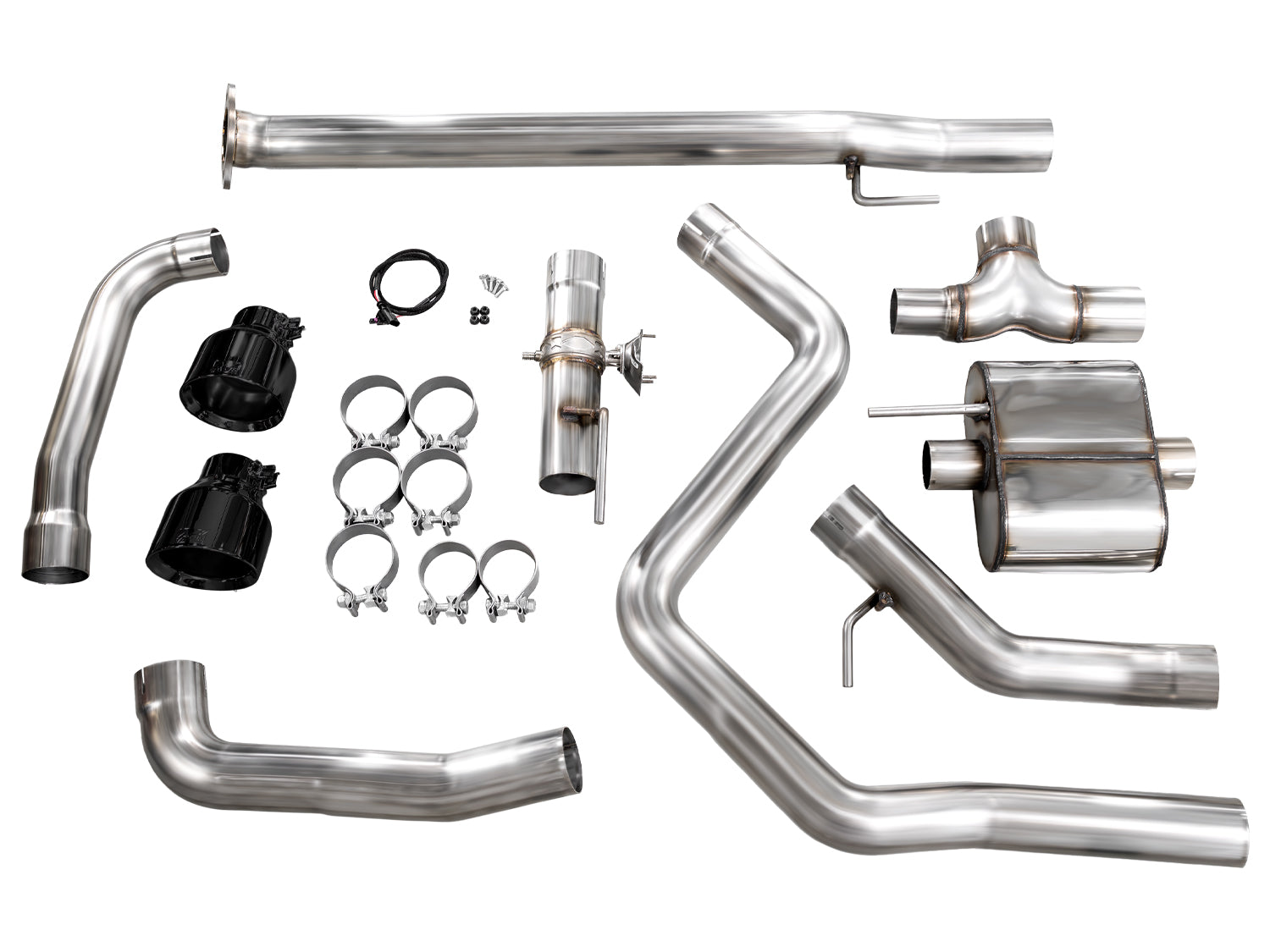 Smooth bends, tight packaging, and two attitudes. The SwitchPath™ Exhaust is comprised of primarily 3-inch U.S-sourced T304L stainless steel featuring a 3” valved passenger-side tip outlet and a 2.5” driver-side outlet with tailored resonator.