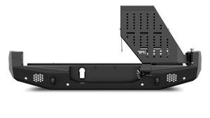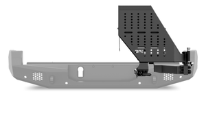 Discover the ultimate adaptable storage solution designed to mount almost anything, from spare tires and jerry cans to tread boards, Rotopax, Hi-Lift jacks, and storage cases. This versatile accessory can be added to your bumper at any time, featuring a built-in foldable table for added convenience. With pre-drilled holes for mounting flexibility, it includes a robust compression latch with a locking pin and serviceable bearings for reliable performance. The brushed aluminum knurled locking pin and stopper prevent over-extension of the swing, ensuring durability. Enjoy easy bolt-on, no-drill installation, though the optional tire/accessory mount is not included. Rated up to 130lbs, this accessory is finished with a durable two-stage light texture black powder coat and comes with a 3-year finish warranty and a limited lifetime warranty. Equip your vehicle with this essential upgrade for unmatched versatility and reliability.