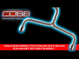 The COBB Titanium Cat-Back Exhaust for your 2018-2021 Volkswagen GTI offers premium styling and quality. Other titanium cat-backs can produce a certain 'tinny' exhaust note, however, the build quality of this system provides a refined note more akin to traditional COBB Cat-Back Exhaust Systems.