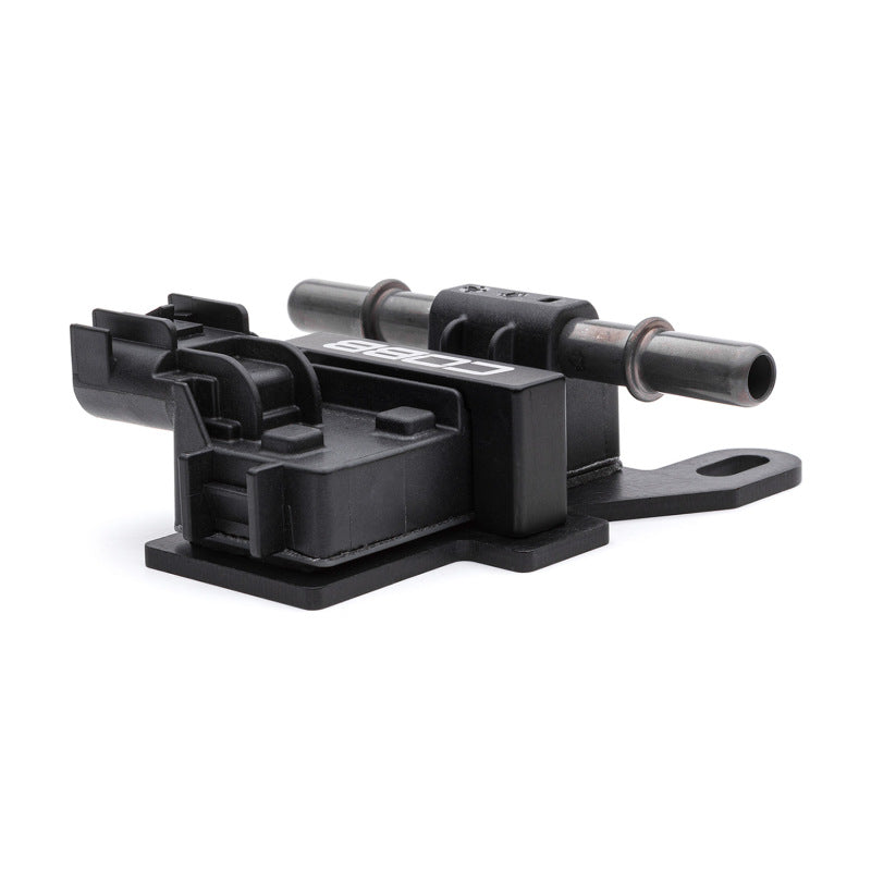 The ethanol content sensor is mounted on the passenger side engine mount and instantaneously reads the ethanol level in the fuel multiple times per second before sending that to ECU to be used by an Accessport-delivered Flex Fuel calibration.