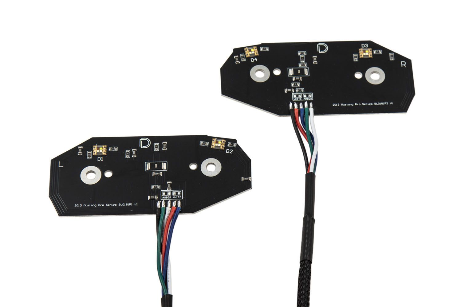 OEM Style, Multicolor Function. The 2013-2014 Ford Mustang has white LED accent bars in the headlights. By replacing the circuit boards inside with Diode Dynamics LED circuit boards, you can add full multicolor functionality to seriously make your ride stand out! Your order includes two sets of LED boards, one for each side of the vehicle.