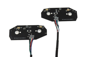 Optically correct. Unlike strips or halos, replacement boards work in conjunction with factory optics in your headlight. Since the factory setup uses only one white chip, it can be difficult to align the light properly from all four replacement emitters (Red, Green, Blue, and White). To save cost, other brands often use low-cost generic chips, which cannot focus light properly. This creates odd appearances, as some sections are brighter than others, and mixed colors like yellow and purple don't match. Diode Dynamics uses high-intensity automotive emitters to direct light properly to the factory optic, and all designs are tested a number of times with small adjustments to make sure the setup is optimized. Even a 0.1mm change can make a big difference, and Diode Dynamics products are carefully tuned for maximum performance.