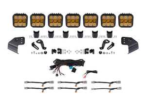Included in the box: Two (2) Application-specific heavy-duty steel brackets. Seven (7) Stage Series 5inch LED Pods. Six (6) CrossLinks with hardware. Two (2) CrossLink supports. One (1) CrossLink endmount kit. Five (5) Ultra Heavy Duty Crosslink splitters. One (1) Ultra Heavy Duty Terminating splitter. One (1) Ultra heavy-duty relay single-output harness. Installation Guide. Installation Instructions