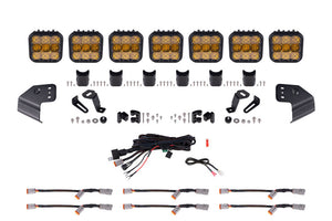 Included in the box: Two (2) Application-specific heavy-duty steel brackets. Seven (7) Stage Series 5inch LED Pods. Six (6) CrossLinks with hardware. Two (2) CrossLink supports. One (1) CrossLink endmount kit. Six (6) Crosslink splitter harnesses. One (1) heavy-duty single-output harness. Installation Guide. Installation Instructions