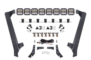 Included in the box: Two (2) Application-specific heavy-duty steel brackets for installation on 2007-2018 Jeep Wrangler. Eight (8) Stage Series 5inch LED Pods. Seven (7) CrossLinks with hardware. Two (2) CrossLink supports. One (1) CrossLink endmount kit. Seven (7) splitter wires. One (1) OEM auxiliary switch single-output harness. One (1) heavy-duty single-output harness. Installation Guide.