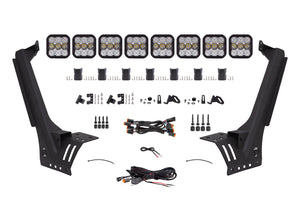 Perfect Fitment. The Windshield CrossLink Lightbar Kit for the 2018-2023 Jeep JL Wrangler from Diode Dynamics allows you to mount eight linked SS5 LED pods above the factory windshield. These application-specific brackets were CAD-designed to bolt into place using factory mounting points above the factory windshield. No cutting or drilling required!