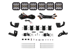 Included in the box: Six (6) Stage Series 5inch LED pods. One (1) Roof rack mounting kit. One (1) CrossLink support bracket kit. Five (5) CrossLinks with hardware. One (1) CrossLink endmount kit. One (1) CrossLink splitter harness. One (1) Heavy-duty single-output wiring harness.