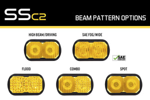 Combo pattern combines both the Driving and Flood optics. It shines light downrange in a focused, rectangular 40x20 degree pattern. The C2 1.0 Pod features a single flood optic on one side with a single driving optic on the other.