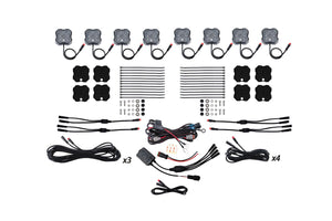 Multicolor plus White. With four high-intensity RGBW LED emitters, the Diode Dynamics Rock Light provides plenty of output in any color you can think of, paired with our RGBW remote or RGBW Bluetooth controller and app. The diffused optical feature of the lens provides excellent integration of colors. And unlike other multicolor lights, the extra white chip means that these will light up in a bright, pure white color when you want to maximize output. Want to show off? Use your controller to start a pattern, strobe, fade, or control the brightness. The best of both worlds! Our RGBW rock lights pack a punch, but if you are looking for the most output possible, check out our single-color rock lights.