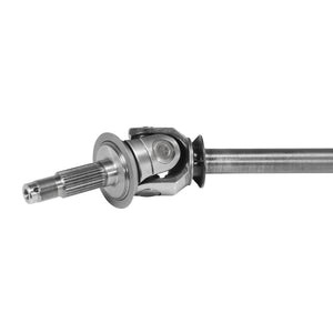 Yukon 1541H right hand replacement assembly for Dana 30 ('84-'90 XJ or '97 and newer TJ/Wrangler) with 27 splines. The inner axle measures 32.4 inches, and the axle measures 38.5 inches overall. Yukon 1541H alloy axles offer a strength increase over stock while retaining a low cost. Yukon 1541H alloy front axles come with a one year warranty against manufacturing defects.