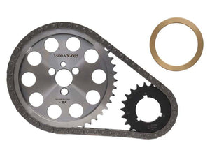 Fully machined billet steel camshaft and crankshaft sprocketsRoller chain designed with .250" diameter rollersCrank sprocket includes three keyways enabling different settings: -4, 0, or +4 degrees of timingCrank sprocket includes three keyways enabling either 0 degress or +/- 4 degress of timingCamshaft sprockets are machined for and include a brass wear shim or a captive Torrington thrust bearing