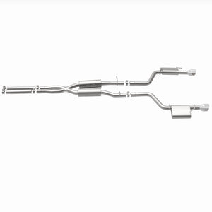 The MagnaFlow 2019-2023 Dodge Charger Street Series Cat-Back Performance Exhaust System 19522 brings out the personality of your 3.6L 2019-2023 Dodge Charger with our signature resonant, powerful engine tone and dyno-proven performance. Thanks to its fast-flowing, mandrel bent 2.5in. main piping and 4 Straight-Through mufflers ending in a Dual Split Rear exit with 4.5in. Polished Welded-On Double Wall Angle Cut Folded Edge tips, this Dodge Charger exhaust kit has the performance chops to match its sporty sound and appearance. Upgrade your ride to the next level with an exhaust that has the pipes to put other Dodge Charger's to shame. With this system your vehicle will be producing Moderate exterior and Mild interior sound levels while leaving other cars and trucks feeling envious at every stoplight. Exhaust kit 19522 features a cat-back layout that replaces your ride's stock exhaust components from near the catalytic converter on back. Extensive 3D scanning during development has resulted in a direct-fit design that you can easily install yourself. 19522 is produced using CNC precision robotic manufacturing techniques and is backed by MagnaFlow's 1-year limited finish warranty and limited lifetime construction warranty.