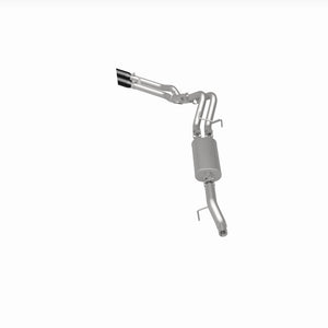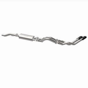 The MagnaFlow 2015-2020 Ford F-150 Street Series Cat-Back Performance Exhaust System brings out the personality of your 5.0L 2015-2020 Ford F-150 with our signature resonant, powerful engine tone and dyno-proven performance. Thanks to its fast-flowing, mandrel bent 3in. main piping and 1 Straight-Through mufflers ending in a Dual Same Side Behind Passenger Rear Tire exit with 3.5in. Black Coated Clamp-On Double Wall Angle Cut Folded Edge tips, this Ford F-150 exhaust kit has the performance chops to match its sporty sound and appearance. Upgrade your ride to the next level with an exhaust that has the pipes to put other Ford F-150's to shame. With this system your vehicle will be producing Aggressive exterior and Moderate interior sound levels while leaving other cars and trucks feeling envious at every stoplight. Exhaust kit 19506 features a cat-back layout that replaces your ride's stock exhaust components from near the catalytic converter on back. Extensive 3D scanning during development has resulted in a direct-fit design that you can easily install yourself. 19506 is produced using CNC precision robotic manufacturing techniques and is backed by MagnaFlow's 1-year limited finish warranty and limited lifetime construction warranty.