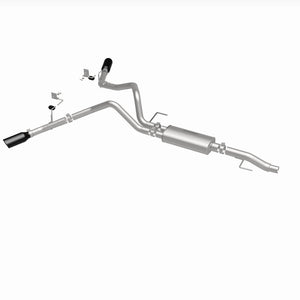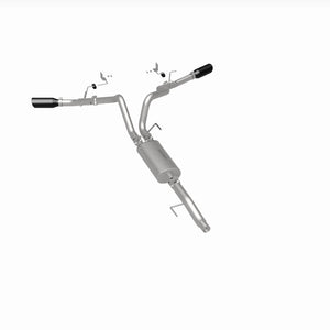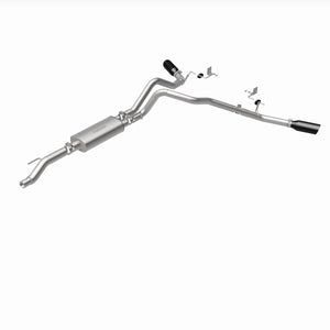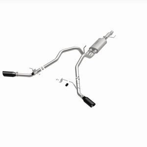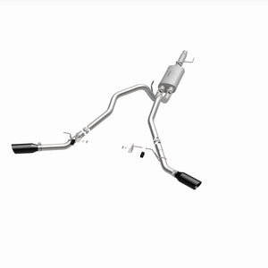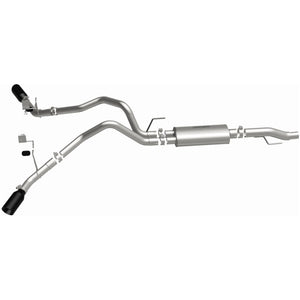 The MagnaFlow 2015-2020 Ford F-150 Street Series Cat-Back Performance Exhaust System 19507 brings out the personality of your 5.0L 2015-2020 Ford F-150 with our signature resonant, powerful engine tone and dyno-proven performance. Thanks to its fast-flowing, mandrel bent 3in. main piping and 1 Straight-Through mufflers ending in a Dual Split Rear Behind Rear Tires exit with 4in. Black Coated Clamp-On Double Wall Angle Cut Folded Edge tips, this Ford F-150 exhaust kit has the performance chops to match its sporty sound and appearance. Upgrade your ride to the next level with an exhaust that has the pipes to put other Ford F-150's to shame. With this system your vehicle will be producing Aggressive exterior and Moderate interior sound levels while leaving other cars and trucks feeling envious at every stoplight. Exhaust kit 19507 features a cat-back layout that replaces your ride's stock exhaust components from near the catalytic converter on back. Extensive 3D scanning during development has resulted in a direct-fit design that you can easily install yourself. 19507 is produced using CNC precision robotic manufacturing techniques and is backed by MagnaFlow's 1-year limited finish warranty and limited lifetime construction warranty.