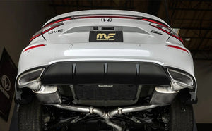 The MagnaFlow Honda Civic Sport Touring Hatchback NEO Series Performance Exhaust System #19652 retains the unique lines of your 2022-2024 Honda Civic Sport Touring Hatchback equipped with the 1.5L engine option while enhancing it with MagnaFlow’s signature exhaust sound and dyno-proven performance gains. This performance exhaust kit is engineered to replace all OEM exhaust components from near the catalytic converter on back while retaining the factory fascia tips for a mostly stock appearance. #19652 features 2.25” mandrel bent main piping that passes through a 14” round straight-through performance muffler, a smooth Y-pipe single-to-dual transition and two 11” oval straight-through performance mufflers before terminating in a dual split rear exit. Each of these Honda Civic Sport Touring Hatchback exhaust systems utilizes flanged connections with new gaskets and hardware, as well as an easy-to-install, direct-fit design. Exhaust kit #19652 is made of durable, corrosion-resistant stainless steel and backed by MagnaFlow’s limited lifetime warranty.