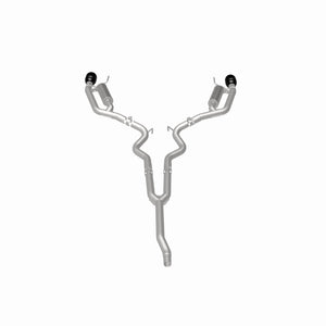 The MagnaFlow 2024 Ford Mustang Ecoboost Competition Series Cat-Back Performance Exhaust System brings an aggressive, attention-grabbing edge to the deep resonant exhaust note we're so well known for. This Ford Mustang cat-back exhaust kit is designed to enhance your 2.3L 2024 Ford Mustang Ecoboost with dyno-proven performance made possible thanks to fast-flowing mandrel bent 2.5in. diameter piping that passes 2 straight-through resonator chambers ending in a dual split rear exit with 4.5in. welded-on double wall angle cut folded edge tips featuring a sporty black chrome finish. The direct-fit design allows for an easy, do-it-yourself installation process. Exhaust system 19639 is engineered to make your Ford Mustang's engine produce moderate interior and aggressive exterior sound levels, befitting its competition-oriented design. 19639 is made of 100% durable and corrosion-resistant stainless steel and produced using CNC precision robotic manufacturing, all backed by MagnaFlow's 1-year limited finish warranty and limited lifetime construction warranty. Please check to ensure compliance with local noise regulations.
