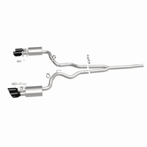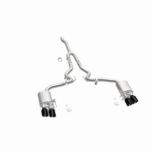 The MagnaFlow 2024 Ford Mustang Ecoboost Competition Series Cat-Back Performance Exhaust System brings an aggressive, attention-grabbing edge to the deep resonant exhaust note we're so well known for. This Ford Mustang cat-back exhaust kit is designed to enhance your 2.3L 2024 Ford Mustang Ecoboost with dyno-proven performance made possible thanks to fast-flowing mandrel bent 2.5in. diameter piping that passes 2 all-new dyno-proven performance chambered mufflers ending in a quad split rear exit with 4in. welded-on double wall angle cut folded edge tips featuring a sporty black chrome finish. The direct-fit design allows for an easy, do-it-yourself installation process. Exhaust system 19640 is engineered to make your Ford Mustang's engine produce moderate interior and aggressive exterior sound levels, befitting its competition-oriented design. 19640 is made of 100% durable and corrosion-resistant stainless steel and produced using CNC precision robotic manufacturing, all backed by MagnaFlow's 1-year limited finish warranty and limited lifetime construction warranty. Please check to ensure compliance with local noise regulations.