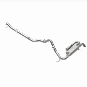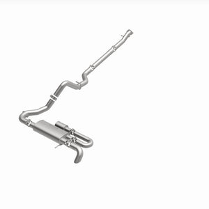 The MagnaFlow Ford Bronco Overland Series Cat-Back Performance Exhaust system #19556 is the perfect solution to further improve the off-road utility of your already-capable 2021-2025 Ford Bronco equipped with the 2.3L turbo I-4. This cat-back, direct-fit exhaust kit is designed to install easily and fit perfectly thanks to the hard work of the engineers at MagnaFlow’s Tech Center, who made detailed 3D scans of the entire vehicle in order to ensure perfect fitment. The advantage of such precise tolerances is that the entire performance exhaust system is mounted closer to the undercarriage of the vehicle than the stock system, resulting in significantly improved ground clearance. #19556 also features 3” main piping that leads to a straight-through muffler before terminating in a single 2.5” high-clearance side exit, which further improves the rear departure angle versus the standard tailpipe. The result of this upgrade is improved rock crawling capability and the ability to get out of tricky situations on the trail more easily. This Ford Bronco exhaust system utilizes a tunable NDT (No Drone Technology) quarter-wave resonator to eliminate unwanted noises at cruising speeds en route to your destination, with the added benefit of improving situational awareness when you’re out exploring or camping in the middle of nowhere. Exhaust kit #19556 is engineered to produce MagnaFlow’s deep signature exhaust tone at mild interior and moderate exterior sound levels, ideal for enjoying the character of your engine without scaring Mother Nature away. The exhaust system is built to last thanks to the use of precision CNC robotic manufacturing techniques and durable stainless-steel construction, all backed by MagnaFlow’s limited lifetime warranty.