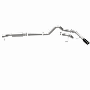 The MagnaFlow 2021-2025 Ford Bronco Rock Crawler Series Cat-Back Performance Exhaust System 19682 brings superior boulder-climbing capabilities to your 2.7L/2.3L Ford Bronco with a weight-optimized, dyno-tested, corrosion resistant and durable stainless-steel design engineered to closely hug the undercarriage of your rig for improved ground clearance. Exhaust kit 19682 is engineered to produce our powerful, resonant signature exhaust note at aggressive exterior and moderate interior sound levels. Extensive 3D scanning was used during the development of this Ford Bronco exhaust system to create a direct-fit design, enabling a do-it-yourself installation process. 19682's emissions-legal cat-back design replaces all your rig's exhaust components from the catalytic converter on back with its 3in. diameter mandrel bent main piping that passes through 1 straight-through muffler before ending in a clamp-on single straight driver side rear exit. The turndown style tipless exit improves departure angles, allowing for more options when it comes to traversing tricky boulders and other off-road obstacles. Also included is a clamp-on tailpipe sub-assembly with a single driver side rear exit and black chrome 4” tip giving you a finished look when cruising around town. Exhaust system 19682 is produced using advanced CNC precision robotic manufacturing techniques and backed by MagnaFlow's limited lifetime warranty.