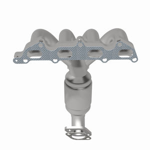 Keep the check engine light off with MagnaFlow OEM Grade Federal/EPA Compliant Direct-Fit Catalytic Converter 49369. With features including free-flowing mandrel-bent tubing and highly corrosion resistant stainless steel construction, easily install this spun body converter yourself using the proper tools, no cutting or welding required. MagnaFlow's state-of-the-art metrology department uses the latest 3D scanning systems during research and development, so you can be confident that your new part will fit and function like the original equipment. By replicating the OE spun body design, the single laser fusion weld greatly reduces the possibility of a leak, and our compact, low-mass design also allows for greater thermal efficiency. This direct-fit catalytic converter is designed specifically for the 2003-2005 Kia Rio and interchanges with OE parts 28510-2X040 and 28510-2X080, among others. Avoid potential exhaust leaks by using the included gaskets to get a proper seal. This replacement part is designed to meet or exceed Federal emissions requirements set forth by the EPA, complying with legal standards for OBDII Federally registered vehicles with California or Federal/EPA Emission systems.