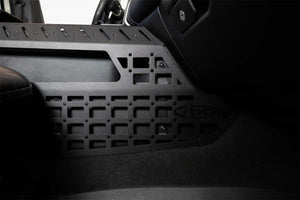 Our Center Console Molle Panels & Digital Device Bridge enables you to keep your everyday carry gear at arms reach. It was designed to flow with the interior lines of your truck's center console, and is finished in a dual-stage hammer black powder coat to complement the factory styling. Driver & passenger side molle panels offer mounting points for gear like pouches, multi-tools, holsters, or other molle accessories. Top plates with 10-24 PEM nuts run the length of the console and provide mounting points for RAM Mounts device holders. An additional bridge plate that crosses over the console features device mounting points, and is perfect for stowing your smartphone, GPS, radio mic, tablet, & other device holders. * Please Note: Drilling is required for installation. 3 Possible Configurations: Side Panels Only - The Side Molle Panels can be installed on their own, without the bridge. This offers you molle mounting options, as well as the upper side rails which are compatible with Ram Mounts device holders. Side Panels & Bridge - This configuration provides you with the maximum utility, offering plentiful molle mounting options, and versatile device holder mounting locations at both the sides and the center of the console. Bridge Only - Although the Device Bridge can be installed on its own, we strongly encourage you to install the side panels along with the bridge for the cleanest aesthetic.