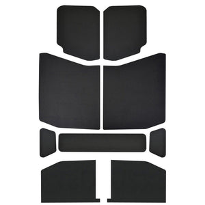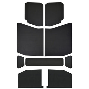 Riding in a Jeep(R) is great fun except for the truck's propensity for interior noise that makes it difficult to engage in conversations or even enjoy vehicle audio systems. Now there is an easy solution. Boom Mat's new Jeep(R) Wrangler Sound Deadening HeadLiner provides a simple pre-shaped peel and stick kit that dresses up the interior of Jeep hard tops while minimizing annoying outside noise and vibrations while insulating from exterior weather conditions. Installed Boom Mat's new Sound Deadening HeadLiner has been tested to reduce noise levels from 3 to 4 decibels. This is a significant change in sound level that will improve overall interior acoustics so Jeep occupants can enjoy audio system and have conversations without excessive and irritating noise distractions. Headliner reduces noise levels 3 to 4 decibels Reduces radiant heat from roof Improves acoustics inside A significant change in noise level that will make it easier to have conversations & enjoy your favorite music Open Cell Polyurethane Foam Finish is a Polymer Surface Treatment