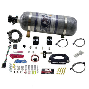 The Nitrous Express C7 Plate System features spraybarless technology for the ultimate in atomization and distribution. The billet plate bolts between the throttle body and intake making installation quick and easy. The solenoids are made from billet aluminum and real carbon fiber for the ultimate in performance and weight savings. . A direct-plug-in Fuel Line Adapter is provided to simplify installation (no need to cut your factory fuel lines). This system includes a TPS Autolearn switch so the nitrous only activates at wide open throttle and automatically turns off when you let your foot off the accelerator. The system includes jetting for 35, 50, 75, 100, 125, 150, 200 and 250WHP horsepower with additional jets. Systems include stainless braided N2O line, master arming switch, relay, relay harness and all necessary hardware to complete the installation. Systems with a bottle include the new billet aluminum Lightning 500 bottle valve and stainless bottle brackets.