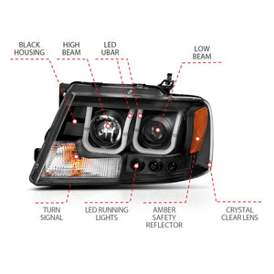 ANZO 2004-2008 Ford F-150 Projector Headlights w/ U-Bar Black - 111288