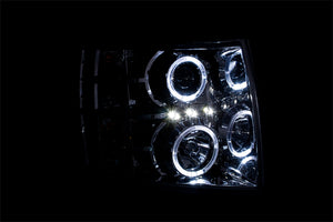 Projector Headlight Set, w/Halo, Clear Lens, Chrome Housing, Pair, . Guaranteed To Improve Your Vehicles Appearance. Rigorously Tested For Fit And Function. Simple Plug And Play. No Modifications Required. Easy Installation Using Common Hand Tools. Uses Stock Mounting Locations And Hardware. D.O.T. Compliant To S.A.E. Standards. Sold As A Pair. Installation Instructions Catalog