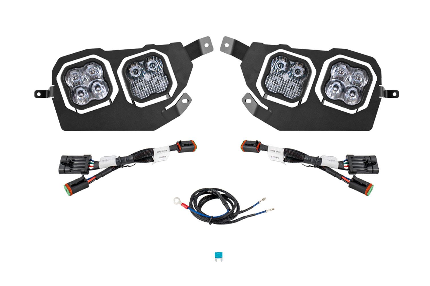 Backlight Functionality. The SS3 pods in this kit include a distinctive amber backlight feature. The backlight fully illuminates the TIR optics, providing unique accent lighting that you won't find in other Polaris RZR XP Headlight Kits on the market. The included harness allows you to easily enable the DRL functionality!