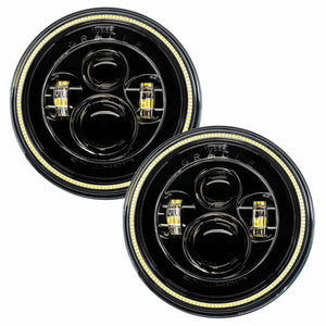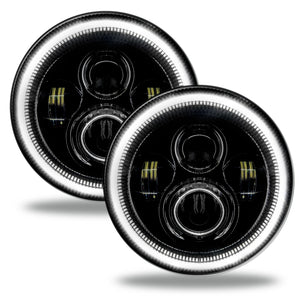 The Ultimate LED replacement headlight option for any vehicle with 7" Sealed Beam lamps. The rugged design is perfect for your Jeep Wrangler, Off-Road Vehicle, Buggies, or Classic Car/ Truck. Installation is very easy with the included H4 and H13 Plug and Play connectors. Each set comes in full color retail-ready packaging and a 2-Year free Replacement Warranty. You can even choose optional colored Halos for even more customization! Improvements in brightness and reliability by adding a constant current LED driver to the main circuit board inside of the lamp to control the halos. NEW! No need for Anti-Flicker Wiring Adapters- The new SMART Integrated Can-Bus system automatically adjusts- preventing flicker issues. Increased Reliability- By conditioning the power going into the LEDs this prevents degradation which can shorten the overall lifespan of the product. Wider Input Voltage Range- The new SMD Halos can operate on a very wide voltage range from 12V-24V so that voltage spike can not damage the LEDs. Brighter LED Halos- by moving the heat load of the resistors off the PCB we are able to increase the number of LEDs on the circuit board without thermal issues. LED chips upgraded from a Cree LED to a Phillips Luxeon ZES chip. They deliver a very high efficacy 130LM/W ratio while having lower thermal output. Installation Instructions