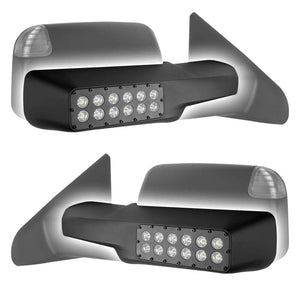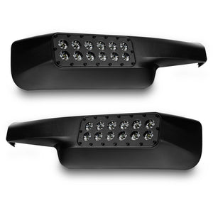 This innovative new product from ORACLE Lighting features high-powered LED light bars integrated into factory-style side mirrors of the RAM 1500/2500/3500! This integration allows for easy installation and a sophisticated, almost "OEM" appearance while providing functional peripheral illumination for the driver. The unique ORACLE design features robust LED modules that have been utilized in other applications and tested for years. The LEDs are a custom design that features a total of 24 LEDs producing approximately 2250 Lm. Each unit has a 45? beam angle to optimize the driver's peripheral visibility. The light beam and focus were designed specifically for this position for optimized functional lighting. Functionality: Why is peripheral illumination important? Factory headlights and most auxiliary lights only illuminate the area in front of the vehicle. Ideally for off-road activities, such as trail riding, the driver needs to be able to clearly see the area on the sides of the trail to spot obstructions, which would otherwise go unnoticed and could be a potential hazard. Unlike existing "Ditch-Lights" which look like an afterthought the Side-mirror is the only part of the vehicle designed to be in the driver field of vision wheel driving- this makes it an ideal location to mount effective and functional lighting to enhance driver visibility during night-time trail rides. Innovation: Besides being functional these new LED Mirrors from ORACLE Lighting look great as well! The LED light bar is a custom design that features a total of 24 powerful Cree LEDs. This gives the driver increased visibility and peripheral illumination. Each unit has a 45? beam angle to optimize the driver's peripheral visibility for riding on the trail or in the desert.