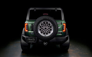 ORACLE Lighting is excited to reveal our new flush mount LED tail light design for the new Ford Bronco. Protruding out significantly less than the factory tail lights, this low-profile design helps avoid potential damage while trail riding. These Ford Bronco tail lights feature an attractive design and functional LED lighting elements including high-powered reverse lights and unique signature perimeter lighting. No more problems backing up at night because these LED reverse lights are basically a pair of LED light bars mounted into the tail light which will provide over 8,000 Lumens of rear-facing illumination. This innovative design wraps tightly around the truck. Because of the nearly flush wrap-around design, the lighting can be visible from any rear angle, making it a unique solution for the Bronco. These flush tail lights provide improved aesthetics and functional LED lighting features including high-powered reverse lights and signature perimeter lighting. As you can see in the animation below, these lights wrap tightly to the vehicle body providing a Flush mount design which not only looks great but is functional as well. Damaging factory tail lights on trails is not an uncommon issue for owners who often off-road their Broncos. The factory design protrudes out several inches past the body which creates unnecessary exposure to trees, boulders, and other obstacles on tight trails. The frame of the ORACLE Lighting Flush Mount LED Tail Light for the Ford Bronco is tight to the body panel reducing exposure and vulnerability. Even if you don't off-road your Bronco often, these lights provide plenty of innovative features and unique styling -- which make them an awesome mod for any Bronco owner. Gain sleek styling that compliments the original body lines and tons of innovative features. With the superior quality and durability that ORACLE Lighting is known for, these tail lights are the perfect upgrade for your Bronco!