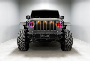 The Popular Oculus(tm) Bi-LED Headlights by ORACLE Lighting are now available in a ColorSHIFT(tm) RGB+W Color-Changing version. Oculus Headlights feature advanced focused LED projection that outshines all the competition (including the factory LED headlights). With 4,800 Lumens of high-quality Bi-LED projection, these headlights provide enhanced driver visibility in all weather conditions. Light focus is very important for driver safety and for others who can have their vision obstructed by glare. We are proud to offer the most focused & lowest-glare LED Headlights for the JL and JT on the market. Each LED feature has a separate cable output and can be connected together so all 3 create the same color or set up as 3 separate Channels or "zones" depending on the user preference and the ColorSHIFT controller selected. Please note that these features are intended for off-road "show" use only and are not compliant for street use. The Pure-White DRL has its own wiring harness (same as the original Oculus) that connects to the fuse box with an add-a-circuit for easy and safe integration. The DRL will come on when the engine is running or can be connected to a switch (including the factory Aux switches) for additional user control.