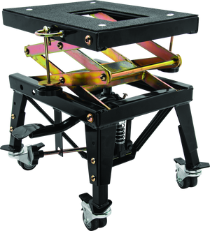 BikeMaster has just made it easier to lift your bike using the MX Scissor Lift. Using the hydraulic foot pedal you can lift up to 350 lbs. anywhere from 12-34 in. high. Locking heavy-duty wheels make moving your bike easier when needed.