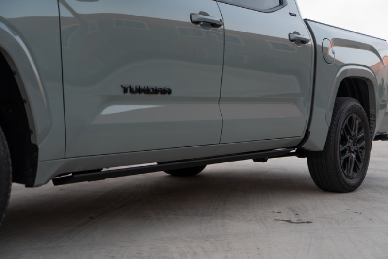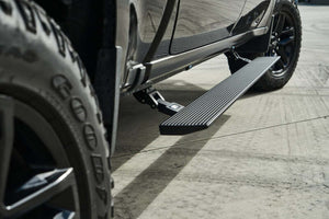 Introducing the Low Profile E-Step, designed to enhance your vehicle's ground clearance while protecting the vital rocker panel. This innovative step features dual-motor functionality and 6-inch wide, full cab length steps that automatically deploy and retract with the opening and closing of your vehicle doors. Integrated LED lights provide increased visibility, and the textured surface ensures a secure stepping area. The Auto Safe-Stop feature engages if an obstruction is detected, and a manual override interior switch is included for added convenience. With an IP67 waterproof rating and a 600lb weight capacity per side, this step offers easy, no-drill installation and is constructed from powder-coated high-grade aluminum. Enjoy peace of mind with a 1-year electrical and 3-year mechanical warranty.