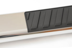 Dee Zee Nerf Steps - A tubular side step for your vehicle. The universal step is combined with custom fit brackets (sold separately) to fit all listed applications. Dee Zee 6 in. step design gives you a beefy step to get into todays trucks. Constructed of heavy duty stainless steel, the oval design features molded plastic end caps and step pads. The rugged step pads are embossed with the Dee Zee name and provide a non-slip surface. The stainless steel is highly polished for a brilliant shine. Required custom fit bracket kits sold separately. Extended Cab - 6 in. x 73 in.