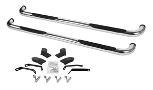 The 4000 Series Side Steps are a pair of classic 3" round tube steps with a 90° bend at each end. High-traction composite step pads makes entering and exiting a truck or SUV safe and easy. Installation is simple with no cutting or drilling required on most vehicles. Vehicle-specific mounting brackets are included. Limited Lifetime warranty on materials, construction and Finish.