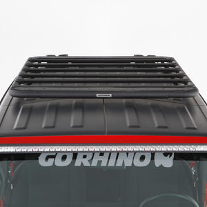 The Go Rhino SRM500 Roof Rack is a platform roof rack that is essential for the off-road and overlanding enthusiast. The flat mounting surface was designed for rooftop tent and the aircraft-grade aluminum construction with custom injection molded, reinforced nylon junctions offer both strength and weight savings. The SRM500 is equipped with Go Rhino’s exclusive 4-CORE aluminum bars, the extruded track system that works with any 1/4x20 hex bolt and provides unlimited mounting options for gear and trail tools. The SRM500 is 52 inches wide, and 65" front-to-back, and can be mounted on any vehicle’s OE crossbars with the included Rhino Clamp system. Other mounting options are also available. SRM 500 come with a Limited Lifetime warranty on materials and construction and a 5 year warranty on the Textured Black Finish.