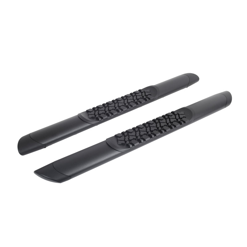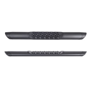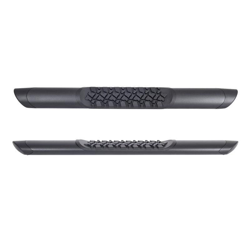 Go Rhino's V3 side steps bring on a sleek, aerodynamic look, the convenience of corrosion-resistant aluminum and strength based on quality engineering and design. Finished with a textured black powder coating, the 5” wide ellipse-shaped boards feature anti-slip polymer step pads with a multi-dimensional tire tread pattern so rain, snow and slush easily drain off and reduce the risk of slipping while stepping up into your vehicle. Each V3 board is fortified with a dual core full length extrusion allowing the board to support up to 300 lbs per step pad (600 lbs per side for 4-door vehicles). V3 Side The V3 Side Steps come with a Limited Lifetime warranty on materials and construction and a 5 year warranty on the Textured Black Finish.
