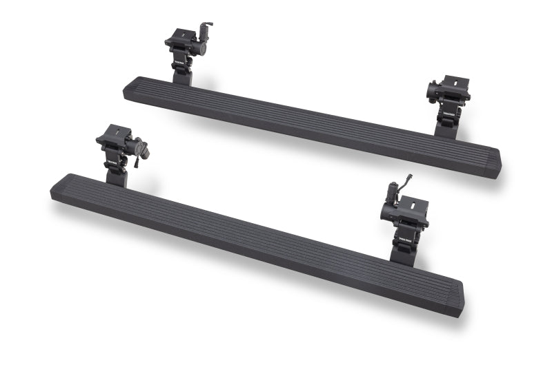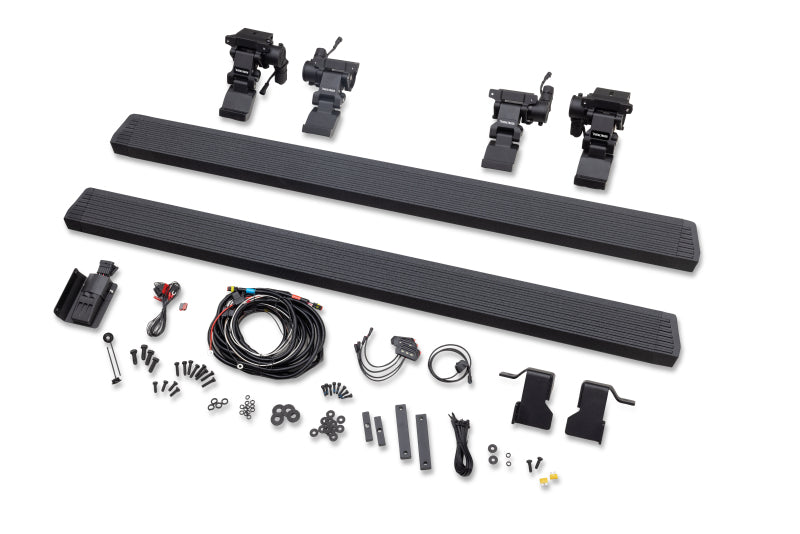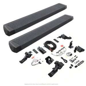 RealTruck VoltStep Electric Running Boards allow you to step in and out of your truck, Jeep, Bronco or SUV with ease. Open your door and the VoltStep automatically deploys, providing a secure 6” wide durable aluminum running board with an anti-slip surface. For additional safety and security, the integrated LED lights turn on automatically when the board deploys. Close your door and VoltStep automatically retracts, providing your vehicle with optimal ground clearance and protection for its rocker panel while preserving the look of your vehicle. With dual motors on each board, Go Rhino's electric running boards are reliable even in extreme climates. The easy-to-install, magnetically activated door switches leave your OBD port free for other accessories. Automatic safety stop and manual override capabilities are included. Boards are finished with a Textured Black Powder Coat and have black nylon endcaps. The VoltStep Electric Running Board Kits come with a Limited Lifetime warranty on materials and construction and a 5-year warranty on the Textured Black finish.