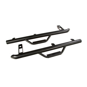 Rugged Ridge Spartan Nerf Bars are the ideal solution for TJ owners looking for a little help climbing into their lifted Jeep without sacrificing that aggressive off-road attitude. Spartan Nerf Bars feature a 3-inch OD primary tube that fits in a higher position than conventional tube steps offering a cleaner look, while patented drop-down step hoops at each door gives you firm footing for easy entry & exit. Constructed from .084 wall steel tubing and finished with a durable 3-stage textured black powder coat, Rugged Ridge Spartan Nerf Bars are designed with the strength and enduring good looks that your Jeep demands. Includes all necessary installation hardware and installation instructions. Does NOT fit Wrangler Unlimited LJ models. Installation Instructions Warranty