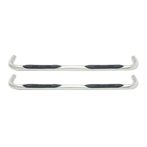 Westin(TM) E-Series Nerf Bars are made of 3in. diameter round tubing and are vehicle specific designs. Step design and mounting technique varies by application (mounting kit included). They feature recessed area mounted step pads unique to E-Series Nerf Bars feature the Westin(TM) brand name and are UV resistant.