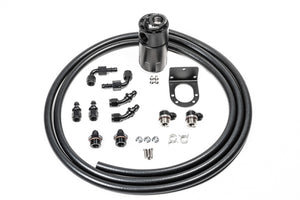 Universal single catch can kit with hoses and fittings for 6AN (3/8 inch ID) hose. Comes with a universal mounting bracket, a variety of adpater fittings and 10 feet of hose for installation into any vehicle.