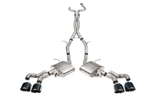 Corsa's Cadillac CT5-V Blackwing cat-back exhaust will give your Blackwing the sound it deserves! The system integrates flawlessly with the stock Cadillac Active Exhaust valve assembly giving the driver full control over the driving experience. Simply choose the driving mode you prefer and Corsa's exhaust system responds by quieting down or unleashing the exhaust system. Featuring Corsa's No Drone RSC(R) Technology this system has been custom tuned for the Cadillac 6.2L LT4 engine creating the perfect tone for this car. The cat-back system features Corsa's 3.0 in. double X-pipe which elminates the stock crushed piping near the rear axles helping to increase flow and performance. Corsa cat-back exhaust systems are engineered and manufactured in the USA and are backed by a Limited Lifetime Warranty